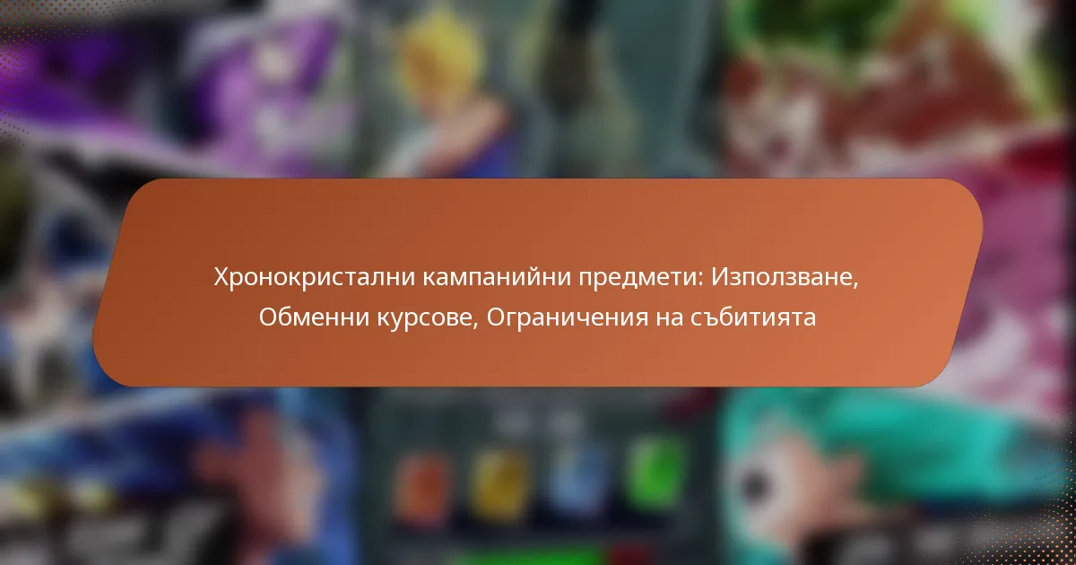 Кампаниите с Хроно кристали са структурирани събития в Dragon Ball Legends, които имат за цел да предоставят на играчите възможности да печелят Хроно кристали чрез игрова активност. Основната цел е да се насърчи участието и да се поддържа активността на общността, като се предлагат награди, които могат да се използват за призив на герои или закупуване на предмети.